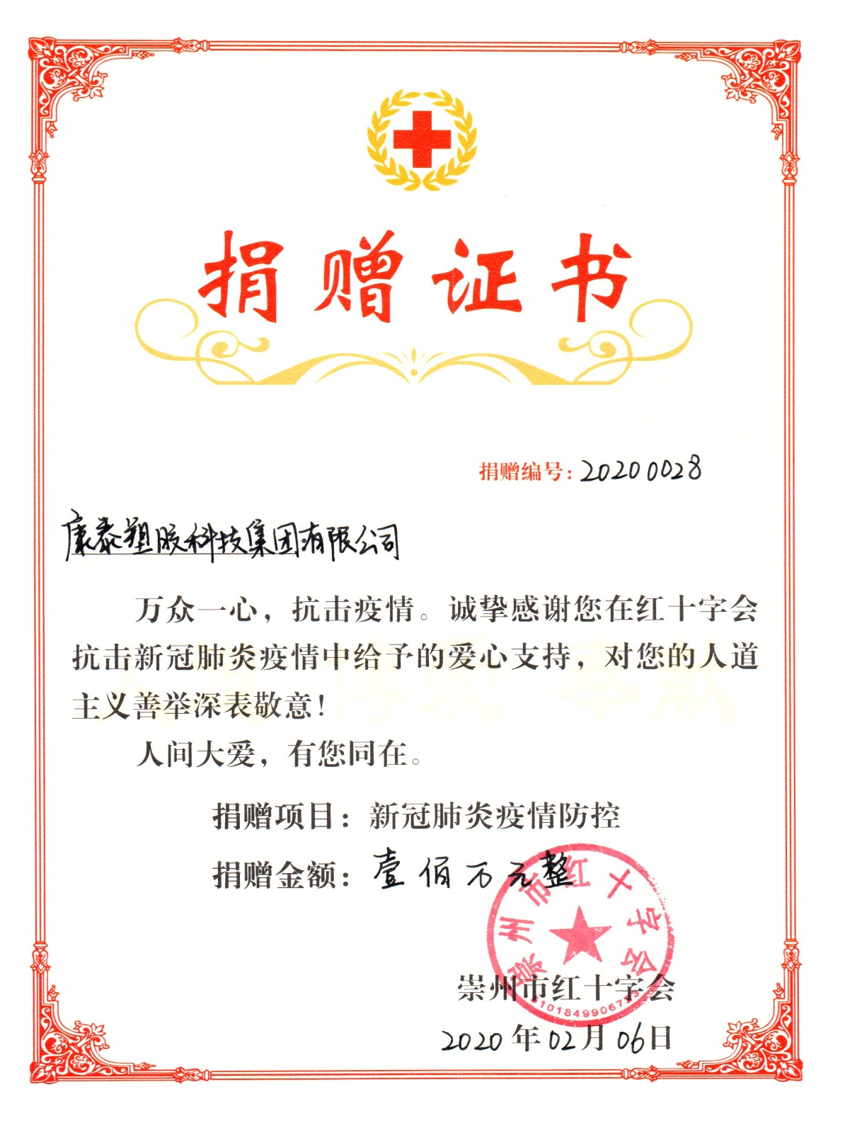 2022.03康泰集團(tuán)捐款100萬(wàn)元助力崇州市疫情防控阻擊戰(zhàn)2020年1月,正當(dāng)全國(guó)人民喜迎新春佳節(jié)時(shí),一場(chǎng)突然而來(lái)的新型冠狀病毒肺炎疫情肆虐中華大地。面對(duì)新型冠狀病毒全民戰(zhàn)爭(zhēng),直接關(guān)系國(guó)家民族、企業(yè)興衰、自身安危,康泰塑膠科技集團(tuán)有限公司作為一家有使命、有擔(dān)當(dāng)?shù)慕ú钠髽I(yè),集團(tuán)董事長(zhǎng)林云青...閱讀人數(shù):9418 -
