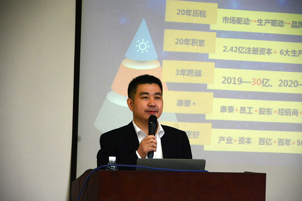 副總裁鄭光鏵的動員講話結合PPT進行,生動形象的向銷售生力軍介紹了康泰的基本情況、發(fā)展戰(zhàn)略、人才戰(zhàn)略和營銷戰(zhàn)略。表示,希望銷售生力軍盡快了解康泰、熟悉產(chǎn)品、掌握營銷的工具和打法,盡快走向營銷市場,開展實戰(zhàn),創(chuàng)造業(yè)績,實現(xiàn)人生價值。