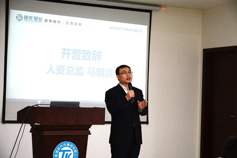 銷售總監(jiān)何朝暉在動員講話中首先對銷售生力軍的加入表示了歡迎。并表示,做營銷,首先要了解產(chǎn)品,更要全面熟悉、了解康泰的發(fā)展歷程、企業(yè)文化和發(fā)展戰(zhàn)略,聚焦塑膠管道未來的發(fā)展趨勢,做到戰(zhàn)必勝,勝必果。