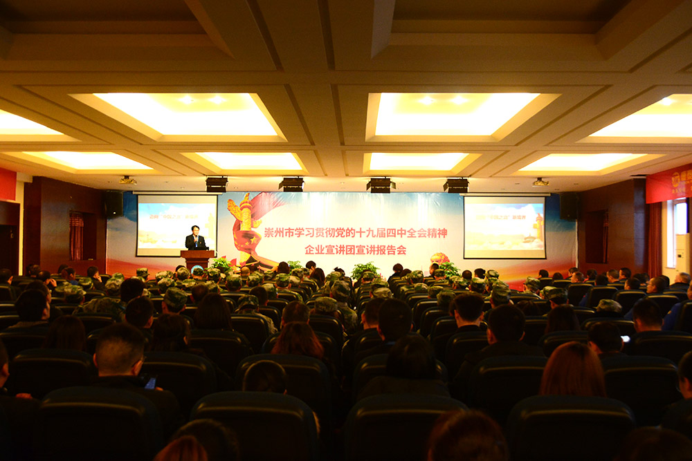在全市上下深入開展學(xué)習(xí)宣傳貫徹黨的十九屆四中全會精神之際,12月16日下午,根據(jù)市委統(tǒng)一安排,崇州市學(xué)習(xí)貫徹黨的十九屆四中全會精神企業(yè)宣講報(bào)告會在康泰集團(tuán)舉行。成都市第十七屆人大代表周云作黨的十九屆四中全會精神宣講。崇州市相關(guān)單位及經(jīng)開區(qū)領(lǐng)導(dǎo)、經(jīng)開區(qū)重點(diǎn)企業(yè)黨支部書記及企業(yè)負(fù)責(zé)人、黨員、預(yù)備黨員等參加了此次宣講會。