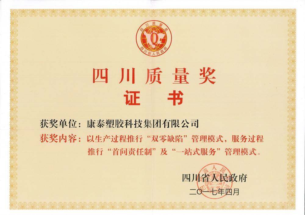 作為“四川質(zhì)量獎(jiǎng)”的獲得者,康泰塑膠科技集團(tuán)從創(chuàng)立以來(lái),一直致力于對(duì)產(chǎn)品的研發(fā)升級(jí)和質(zhì)量把控,不斷滿(mǎn)足客戶(hù)的需求。在康泰,公司建立了一整套質(zhì)量管控體系,以“圍繞全球顧客、不斷改善,追求產(chǎn)品零缺陷”的質(zhì)量方針,貫徹“產(chǎn)品如人品”的質(zhì)量理念,全面覆蓋ISO9001、ISO14001、OHSAS18001三體系,實(shí)施全員、全面質(zhì)量管理,通過(guò)導(dǎo)入PDCA循環(huán)管理和QCC體系,嚴(yán)格質(zhì)檢把控?!皥?jiān)持不合格原料不進(jìn)廠”,從源頭杜絕不合格產(chǎn)品的出現(xiàn);“堅(jiān)持不合格的產(chǎn)品不出廠”,從生產(chǎn)流程上杜絕不合格產(chǎn)品的出現(xiàn),確保產(chǎn)品各項(xiàng)質(zhì)量指標(biāo)均達(dá)到或優(yōu)于國(guó)家標(biāo)準(zhǔn),讓用戶(hù)滿(mǎn)意。