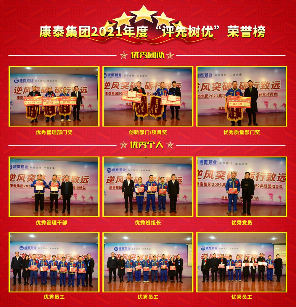 站在2022年的起點回望2021年,無疑是翻天覆地的一年。這一年,我們見證了國內(nèi)塑膠建材市場從高熱狀態(tài)到深度調(diào)整的轉(zhuǎn)變;這一年,我們也經(jīng)歷了“碳中和”、“工業(yè)限電”、“原材料上漲”給制造業(yè)帶來的變革加速。“思深方益遠(yuǎn),謀定而后動?!睘榱俗吆?022年開局第一步,康泰集團(tuán)總部基地在新舊年份交接之際召開年會,復(fù)盤過去一年的成果業(yè)績、工作難點及應(yīng)對策略,肯定了過去一年來取得的佳績并就此進(jìn)行了年度頒獎。