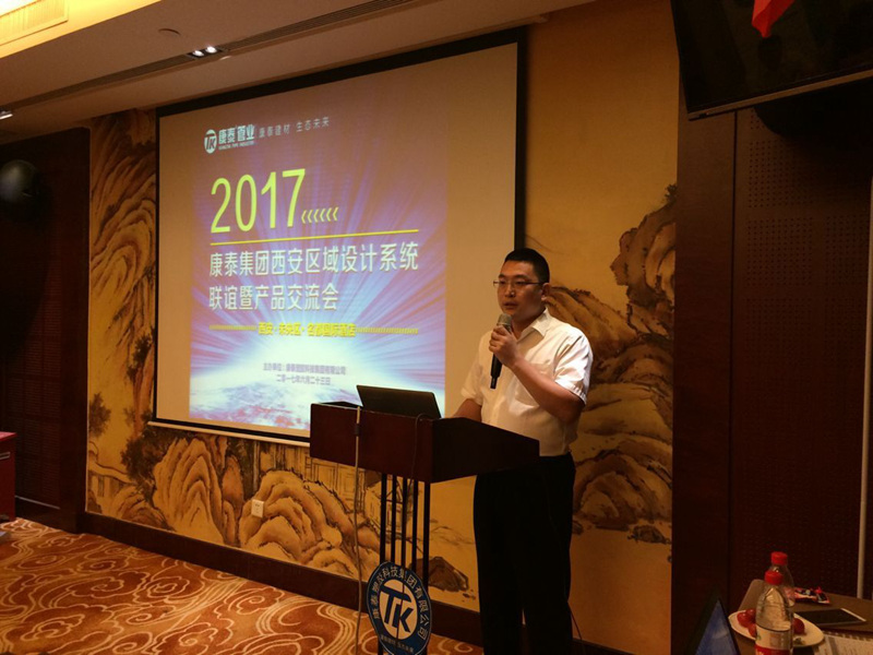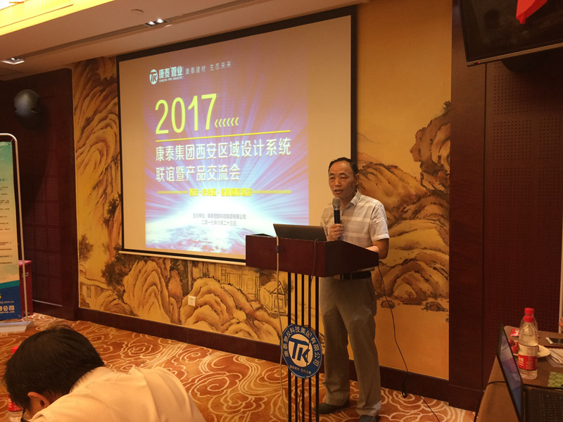 下午3點,會議正式開始。西安分公司經(jīng)理鄒鑫首先致辭,對各位專家、設(shè)計師的到來表示熱烈的歡迎,對各位專家、設(shè)計給予康泰的支持和幫助表示了衷心的感謝。中國建筑西北設(shè)計研究院總工程師劉西寶作了發(fā)言,對本次會議的圓滿召開表示了祝賀,并對康泰集團的規(guī)模、產(chǎn)品種類和技術(shù)創(chuàng)新表示了肯定。