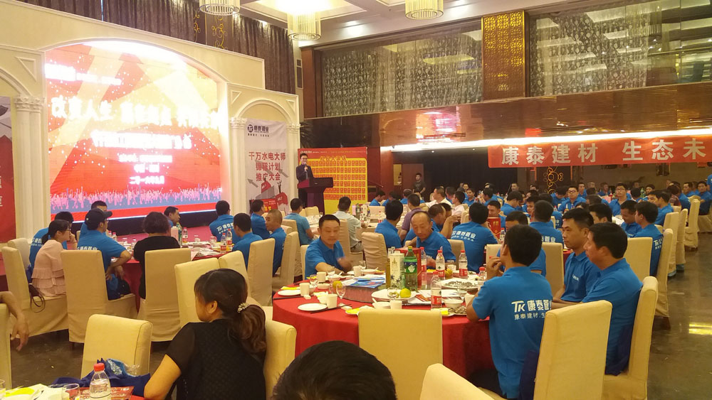 ? ? ? ? “‘改變?nèi)松②A在起點(diǎn)、共用共享’浙江康泰千萬水工錦程計(jì)劃大型推廣會(huì)” 9月23日重回主場浙江湖州。這是繼江西上饒之后的第三場會(huì)議。浙江基地總經(jīng)理潘明正、集團(tuán)市場總監(jiān)鄭光鏵、集團(tuán)營銷顧問王楨、浙江基地家裝部總監(jiān)王兵、湖州物流中心總經(jīng)理管俊華等出席會(huì)議。湖州區(qū)域水電工、部分重點(diǎn)經(jīng)銷商以及浙江康泰銷售團(tuán)隊(duì)全體人員參加了本次會(huì)議。
