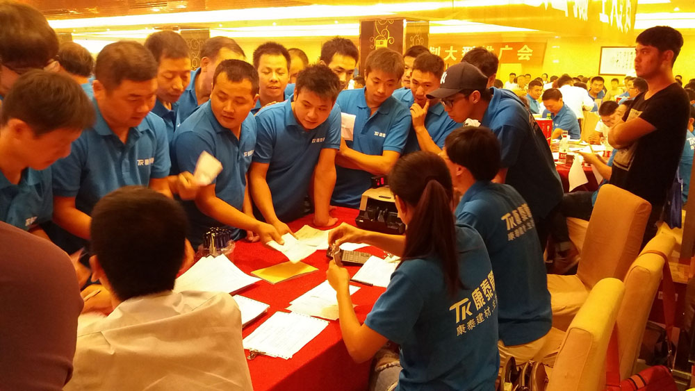 ? ? ??下午4時(shí),會(huì)議在湖州皇冠大酒店正式開始。會(huì)上,湖州物流中心總經(jīng)理管俊華首先致辭,對廣大水電工的到來表示了熱烈的歡迎;集團(tuán)市場總監(jiān)鄭光鏵就“錦程計(jì)劃”的內(nèi)容和目的進(jìn)行了闡述,并強(qiáng)調(diào)了集團(tuán)公司對計(jì)劃的支持和配合;浙江基地家裝部總監(jiān)王兵則結(jié)合PPT對公司產(chǎn)品進(jìn)行了詳細(xì)的介紹;集團(tuán)營銷顧問王楨對“錦程計(jì)劃”的政策作了講解。會(huì)議還邀請水電工進(jìn)行了焊接技術(shù)展示。? ? ? ?“浙江康泰千萬水工錦程計(jì)劃”旨在傳播“廠家與服務(wù)商都給你打工,輔助你當(dāng)老板,改變你的人生”的營銷理念,讓更多的水電工加入到“千萬水工錦程計(jì)劃”中來。通過前兩場會(huì)議的宣傳和造勢,“錦程計(jì)劃”已經(jīng)越來越被廣大水電工認(rèn)同和接受。隨著優(yōu)惠政策的不斷推出,參會(huì)水電工都對計(jì)劃表示出了十足的興趣,會(huì)議現(xiàn)場熱情火爆,激情澎湃,過半人數(shù)進(jìn)行了現(xiàn)場簽單。
