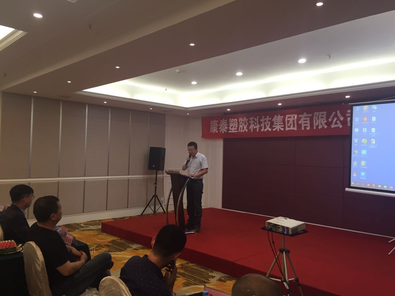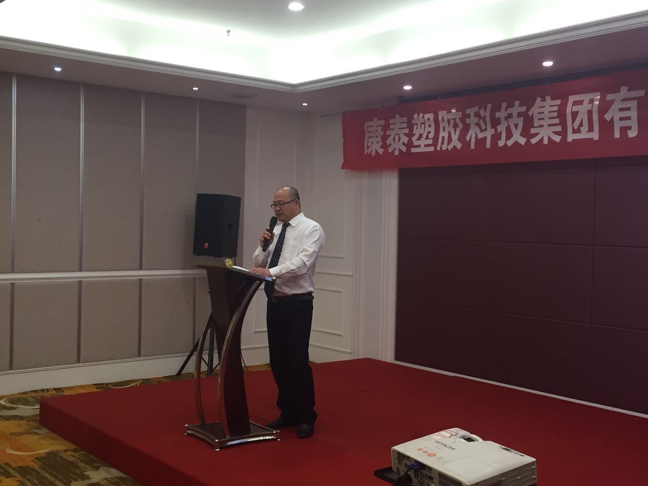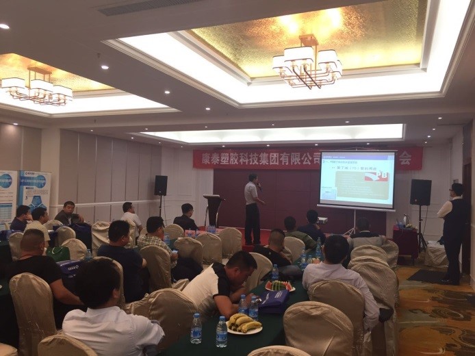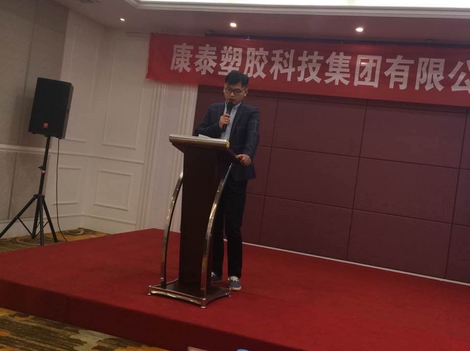 ? ? ? ?會上,康泰塑膠科技集團河南基地生產(chǎn)負責人林化平圍繞康泰的多款新產(chǎn)品的優(yōu)點和特性,從設計理念、開發(fā)背景、技術特點、產(chǎn)品原料、生產(chǎn)設備、性能對比、實驗分析、應用領域、工程案例等方面作了詳細的介紹。河南銷售分公司總經(jīng)理周建峰通過實際案例向各位來賓介紹了康泰集團的品牌價值及產(chǎn)品銷售理念。康泰產(chǎn)品商丘總代理梁輝先生也表達了對于康泰集團的感謝以及對康泰產(chǎn)品和商丘市場的巨大信心。