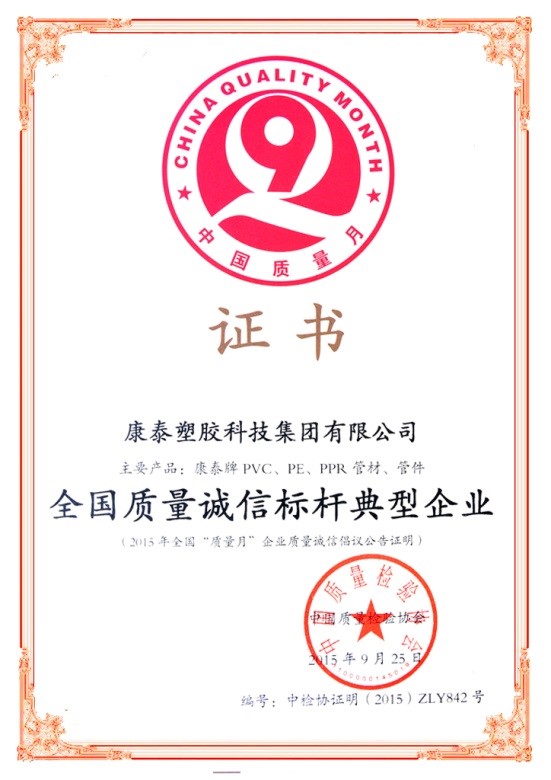 ?????? 近日,作為生態(tài)建材行業(yè)領導者企業(yè)的康泰集團在2015年全國“質量月”活動中,被國家多家權威部門和協(xié)會評為“全國質量誠信標桿典型企業(yè)”。此次榮譽的獲得,是康泰產品質量的的充分肯定??堤┮矔源藭藯U,積極履行質量安全主體責任,與大家攜手邁向質量新時代。