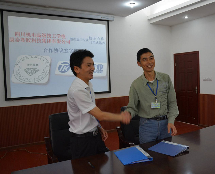 ?????? 2014年9月3日下午14:30,康泰塑膠科技集團(tuán)有限公司與四川機(jī)電高級(jí)技工學(xué)校校企合作、訂單培養(yǎng)協(xié)議簽字儀式在四川機(jī)電高級(jí)技工學(xué)校第二會(huì)議室舉行。