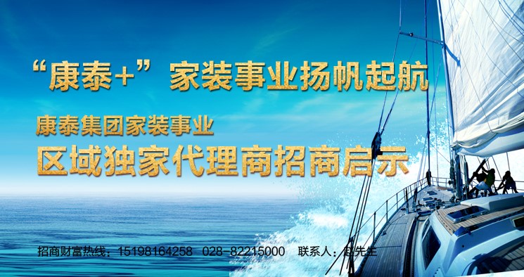 ? ? ? ?“康泰+”家裝事業(yè)現已面向全國誠招區(qū)域獨家代理商,選擇康泰,與康泰同行,您不再孤軍奮戰(zhàn),因為有康泰集團堅實后盾,有一支高效率的營銷團隊時刻準備著為您服務,您的事業(yè)我們全程陪伴、共同前行!現區(qū)域獨家代理首次全線開放,獨霸一方的市場機會僅有一次,全城獨家代理商僅有一席,請您亮劍!