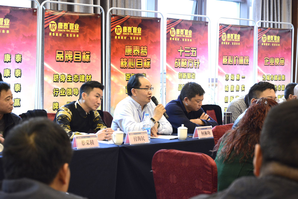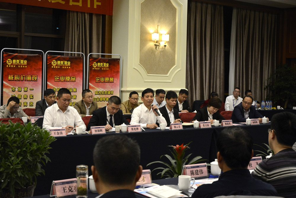 副總裁鄭光鏵在會(huì)上作了題為《轉(zhuǎn)型升級(jí) 深度合作》報(bào)告。從經(jīng)銷商面臨的挑戰(zhàn)、國家政策導(dǎo)向、行業(yè)前景、康泰發(fā)展目標(biāo)、戰(zhàn)略與目標(biāo)匹配、經(jīng)銷商的定位、經(jīng)銷商深度合作模式七個(gè)方面作了闡述指出,塑膠建材行業(yè)仍然是個(gè)好行業(yè),是個(gè)挑戰(zhàn)與機(jī)遇并存的行業(yè),康泰也在積極做整體管理、統(tǒng)一營銷,加快產(chǎn)業(yè)+資本轉(zhuǎn)型升級(jí)。廣大經(jīng)銷商要以康泰為平臺(tái)支撐,積極整合資源,共同應(yīng)對(duì)行業(yè)大洗牌的挑戰(zhàn),實(shí)現(xiàn)合作共贏。