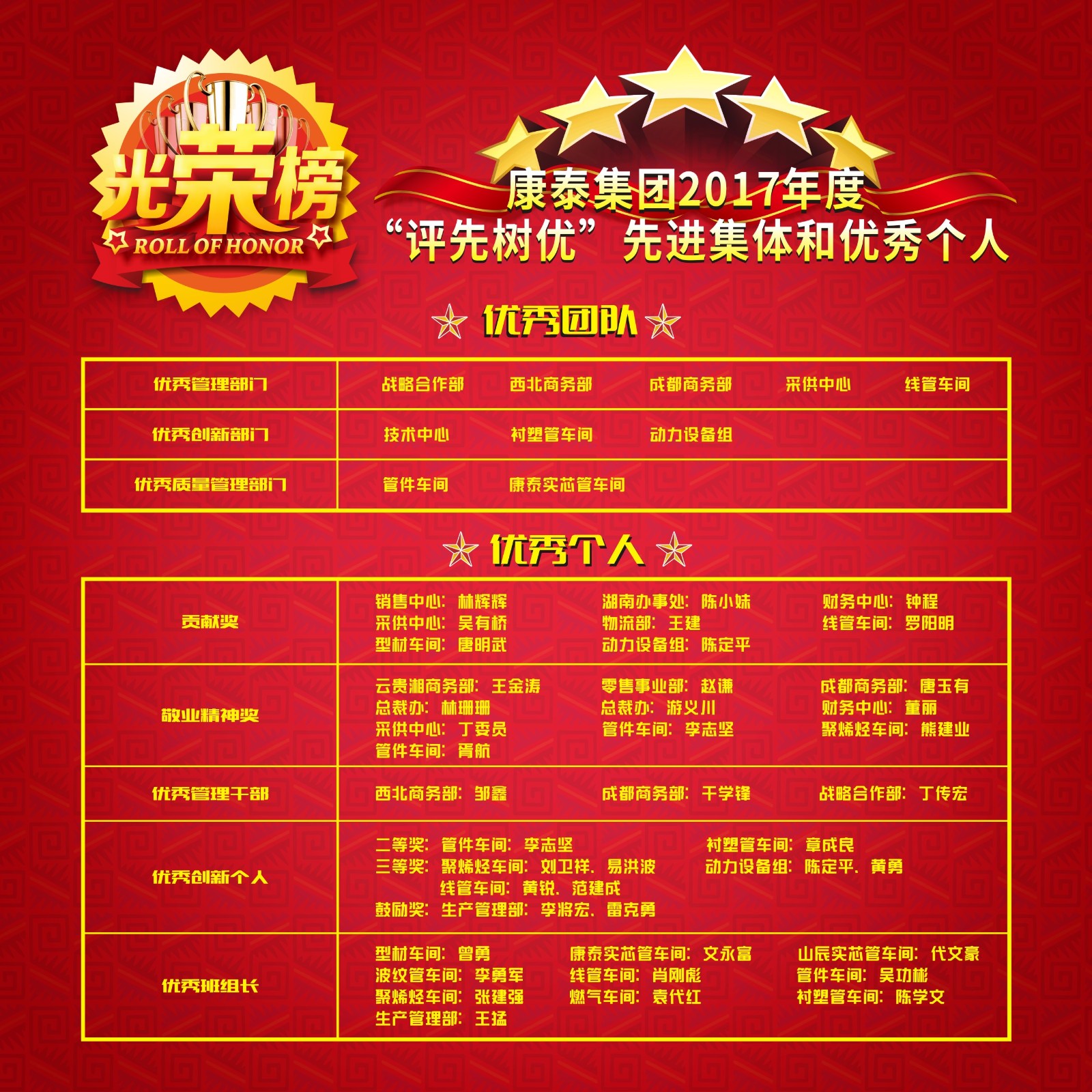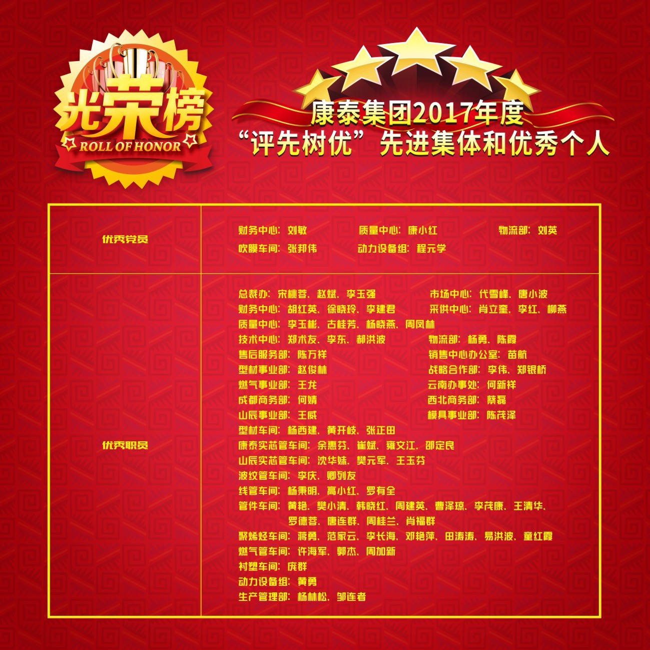 會(huì)上,集團(tuán)董事長(zhǎng)兼總裁林云青發(fā)表了重要講話。林總裁首先對(duì)獲獎(jiǎng)的單位和個(gè)人表示了祝賀,對(duì)全體康泰員工在2017年的辛勤付出表示了感謝,并期望所有獲獎(jiǎng)單位和個(gè)人在工作中起好模范帶頭作用,再接再厲,頑強(qiáng)拼搏,做出更加優(yōu)異的成績(jī)。林總裁表示,今天不代表昨天,明天的成功是今天努力的結(jié)果。希望全體康泰人在2018年,再接再厲,再立新功。