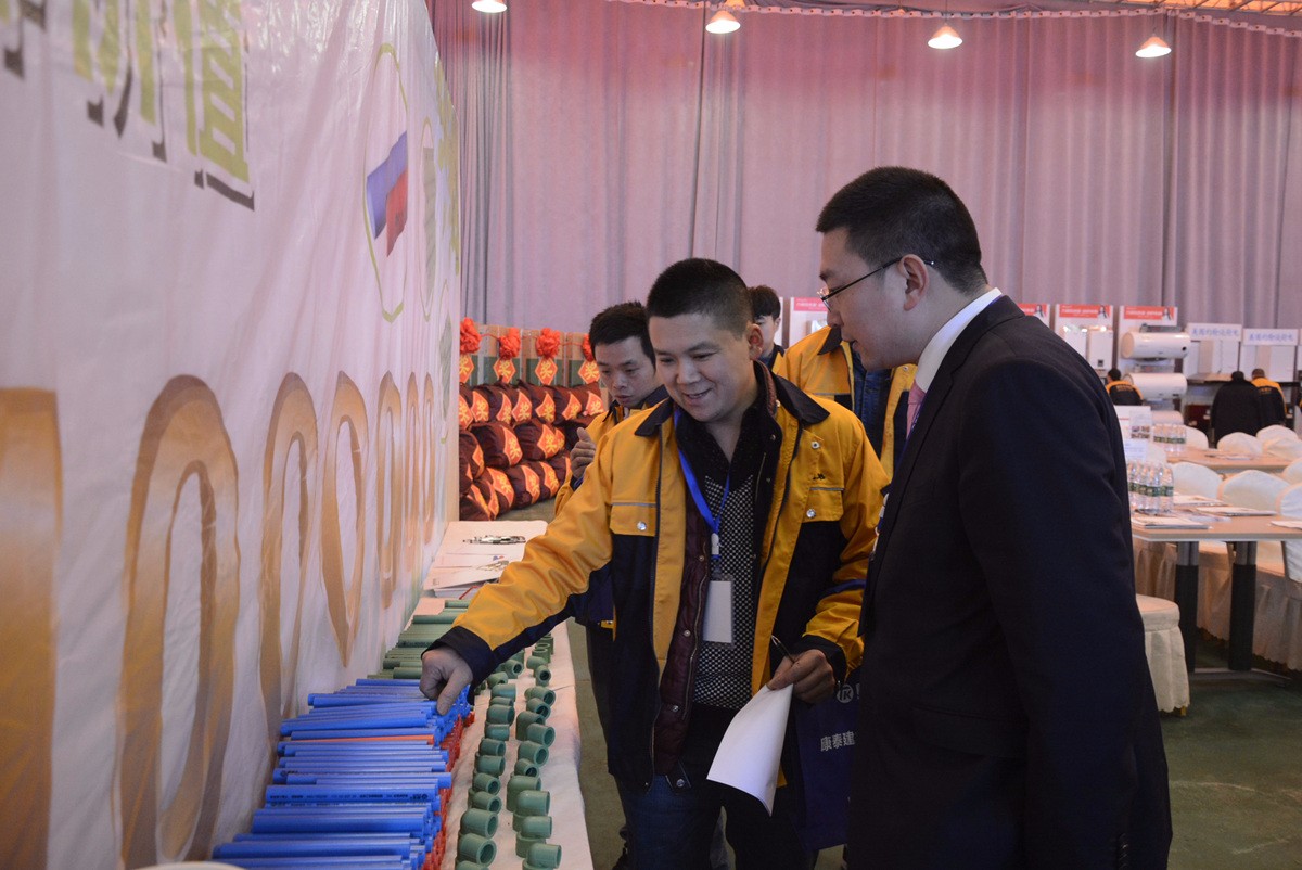 在本次會議上,康泰集團(tuán)宣傳海報(bào)林立、產(chǎn)品陳列整齊有序,不僅全面展示了康泰集團(tuán)的企業(yè)形象,還隆重的向遂寧地區(qū)推出了康泰慧家系列家裝管。在產(chǎn)品展示臺前,質(zhì)量優(yōu)、品相佳、服務(wù)好的康泰家裝產(chǎn)品一經(jīng)登場,便迎來了許多客戶的矚目。大家不時(shí)仔細(xì)查看產(chǎn)品外觀、抑或向工作人員詳細(xì)咨詢產(chǎn)品性能,充分表達(dá)了遂寧客戶對康泰慧家系列家裝管的信賴和認(rèn)可。