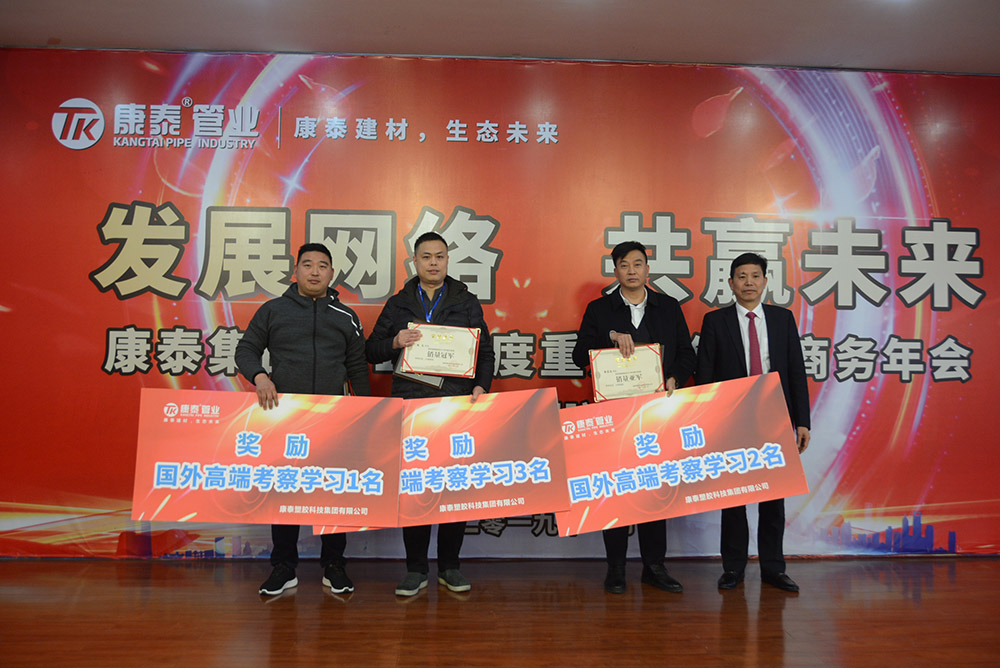 在結(jié)束完所有議程后,18時(shí)許,會(huì)議在熱烈的掌聲中圓滿閉幕。歲序更替,華章日新。2019年,對(duì)于康泰集團(tuán)來(lái)說是充滿期待和希望的一年??堤┘瘓F(tuán)致力于做“中國(guó)塑膠管道工程集采第一供應(yīng)商”的發(fā)展定位,以“為城市建設(shè)集成供應(yīng)生態(tài)管道系統(tǒng),管通全球”的企業(yè)使命,打造實(shí)現(xiàn)“百億康泰、百年康泰,中國(guó)民營(yíng)企業(yè)500強(qiáng)”,全面構(gòu)建實(shí)現(xiàn)品質(zhì)康泰、智能康泰、生態(tài)康泰、康泰+跨越發(fā)展。讓我們攜起手來(lái),共同開創(chuàng)康泰集團(tuán)更加美好的明天!