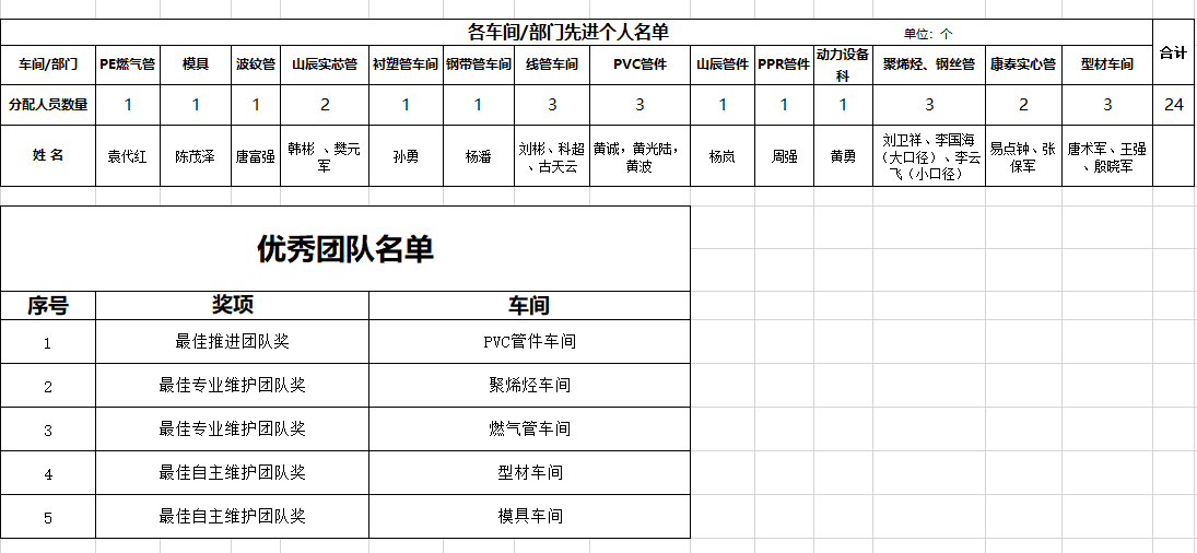 圖為最佳自主維護(hù)團(tuán)隊(duì)、最佳專業(yè)維護(hù)團(tuán)隊(duì)