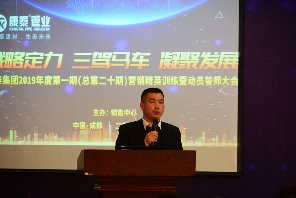 在全場(chǎng)熱烈的掌聲中,林總裁上臺(tái)作了熱情洋溢的新年致辭和動(dòng)員講話(huà)。林總裁首先對(duì)集團(tuán)公司在2018年取得的優(yōu)異業(yè)績(jī)向全體銷(xiāo)售人員的付出表示了感謝。林總裁表示,康泰的發(fā)展定位就是做中國(guó)工程集采第一供應(yīng)商,2019年是充滿(mǎn)挑戰(zhàn)的一年,也是為實(shí)現(xiàn)三年目標(biāo)打基礎(chǔ)的一年。我們要充分發(fā)揮三駕馬車(chē)——發(fā)展民建、發(fā)展網(wǎng)絡(luò)、發(fā)展市政的優(yōu)勢(shì),切實(shí)做到品牌強(qiáng)大、技術(shù)強(qiáng)大、網(wǎng)絡(luò)強(qiáng)大、團(tuán)隊(duì)強(qiáng)大,提升公司的核心競(jìng)爭(zhēng)力。