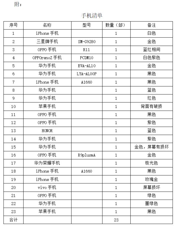 拍品編號(hào)1號(hào):手機(jī)23部(整體拍賣)