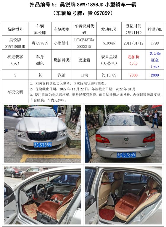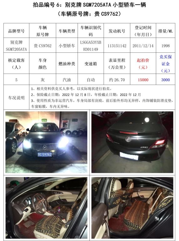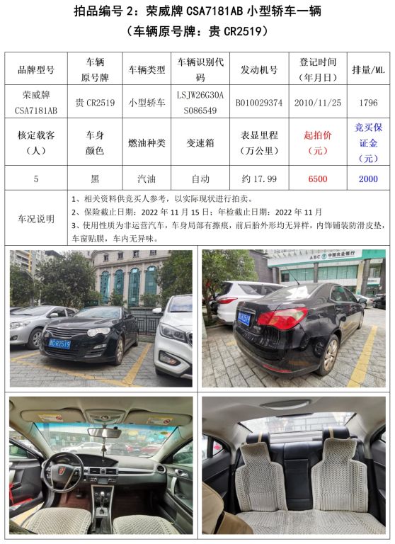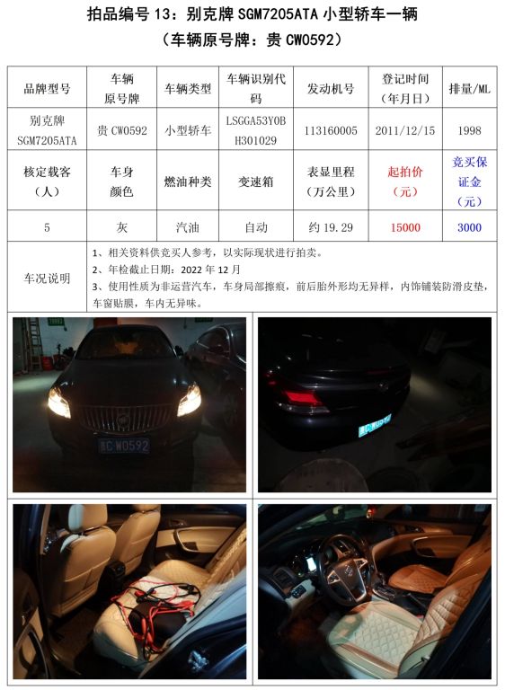 受委托,我公司定于2022年11月22日(星期二)下午14:30在中拍平臺(https://paimai.caa123.org.cn/)及貴州省遵義市匯川區(qū)廈門路13號中國農業(yè)銀行遵義分行16樓會議室采用網絡與現場同步拍賣方式公開拍賣以下標的: