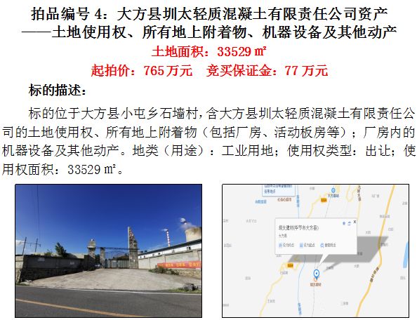 4、大方縣圳太輕質(zhì)混凝土有限公司資產(chǎn)(土地面積為33529㎡);