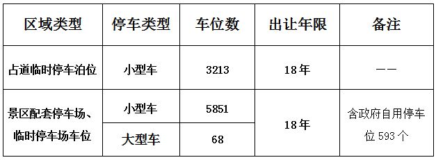黃果樹風(fēng)景名勝區(qū)公共停車場出讓經(jīng)營權(quán),車位數(shù):9132個,出讓年限:18年。