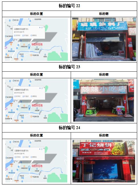 1.本次拍賣標的共計67個,均以現(xiàn)狀出租,其中:1—30號標的目前為租賃狀態(tài),如承租人參與競租,其享有同等價位優(yōu)先承租權,其余標的均為閑置狀態(tài)。