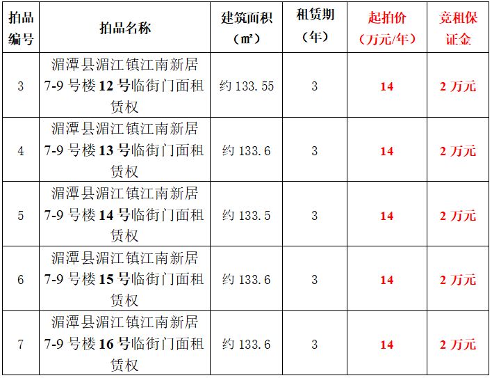 拍品3-7號:湄潭縣湄江鎮(zhèn)江南新居7-9號樓12號-16號臨街門面租賃權