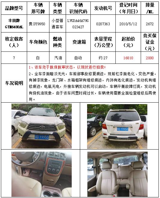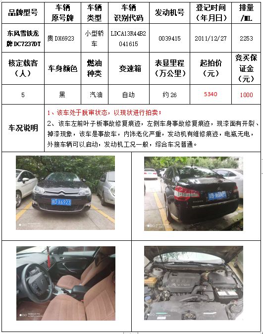 受委托,本公司定于2021年9月16日(星期四)下午14:30時(shí),在銅仁市碧江區(qū)川硐教育園區(qū)誠(chéng)信路銅仁市公共資源交易中心開(kāi)標(biāo)六室(拍賣大廳)公開(kāi)拍賣以下車輛: