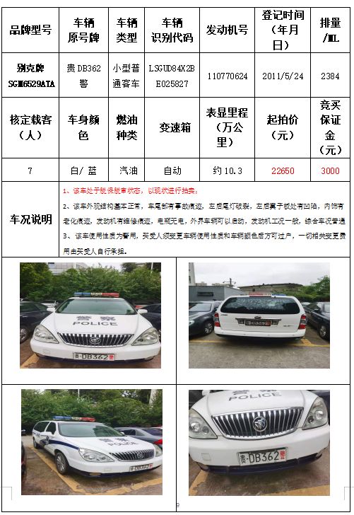 拍品編號(hào)4:別克牌SGM6529ATA小型普通客車一輛