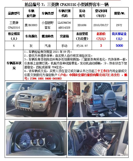 【已結(jié)束】黔西南7輛車輛拍賣公告