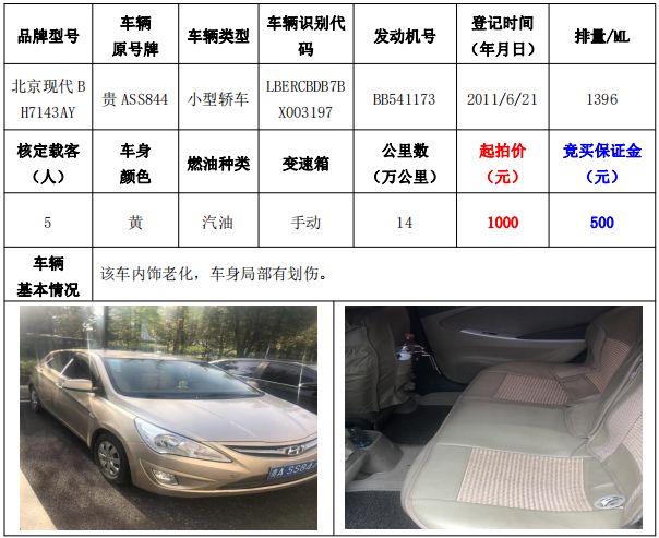 拍品編號(hào)2:北京現(xiàn)代BH7143AY小型轎車