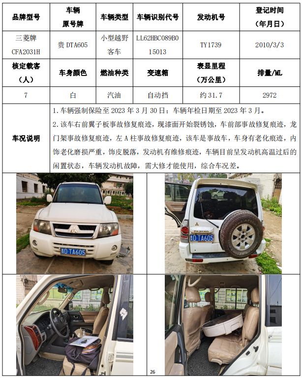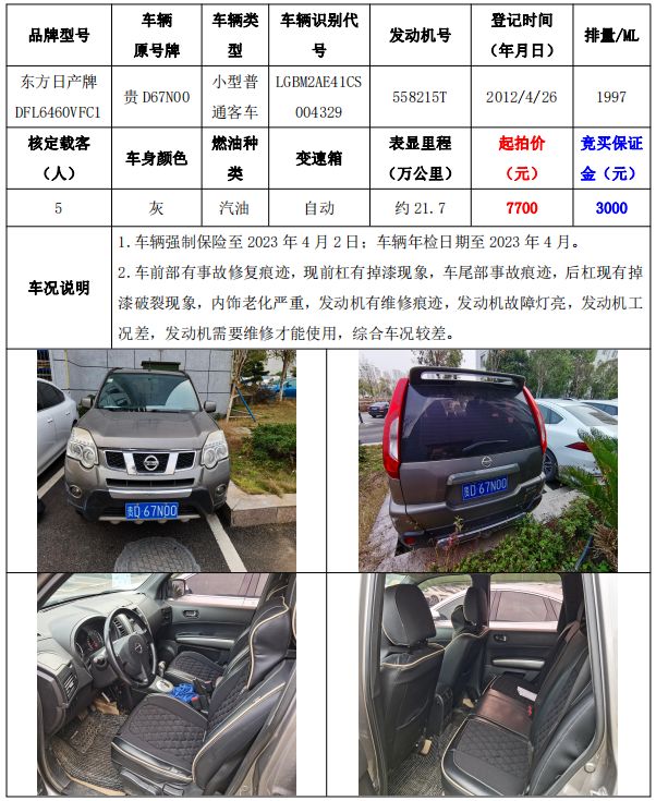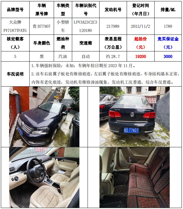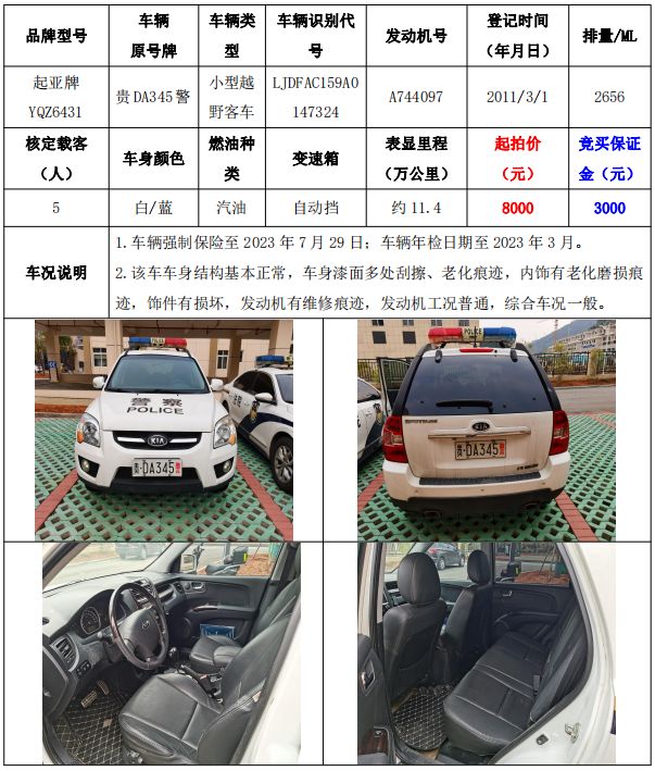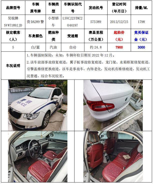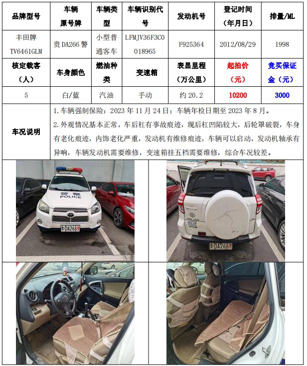 【已結(jié)束】銅仁市車輛拍賣公告