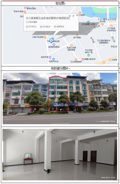 2、江口縣雙江鎮(zhèn)龍井廣場(chǎng)江源山水20棟1層2號(hào)一樓商業(yè)門面一間,建筑面積:744.3㎡,起拍價(jià)2992100元,競(jìng)買保證金:40萬元。