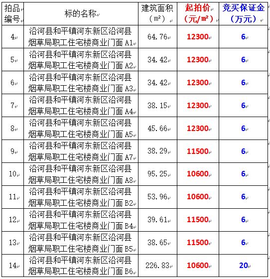 4、沿河縣和平鎮(zhèn)河?xùn)|新區(qū)沿河縣煙草局職工住宅樓商業(yè)門面11間,建筑面積:34.42㎡-226.83㎡,起拍價(jià):10600元/㎡-12300元/㎡,競(jìng)買保證金:6萬元/間。