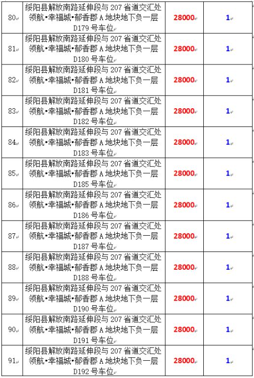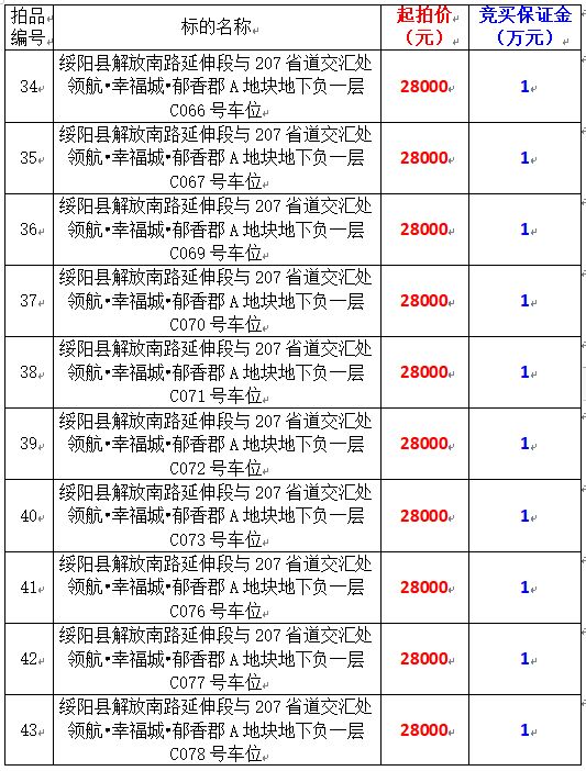 拍品編號(hào)34-203:綏陽縣解放南路延伸段與207省道交匯處領(lǐng)航?幸福城?郁香郡A地塊地下負(fù)一層170個(gè)車位