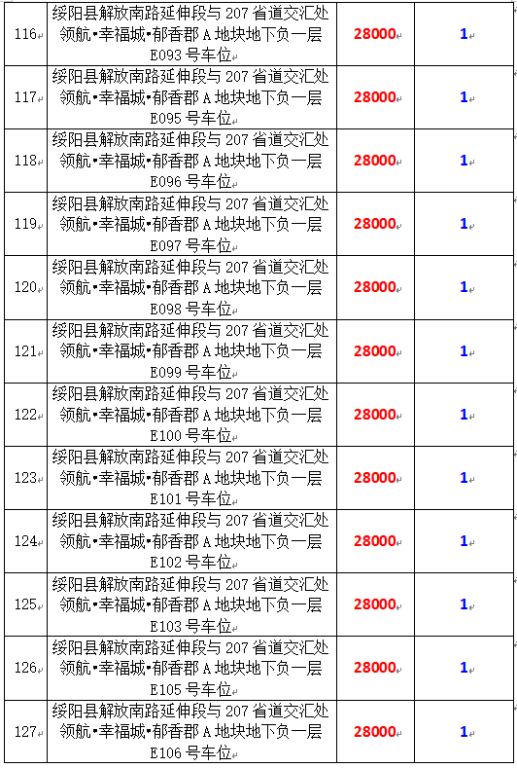 6、綏陽縣解放南路延伸段與207省道交匯處領(lǐng)航?幸福城?郁香郡A地塊地下負(fù)一層170個(gè)車位,起拍價(jià):28000元/個(gè),競(jìng)買保證金:1萬元/個(gè)。