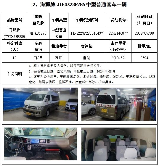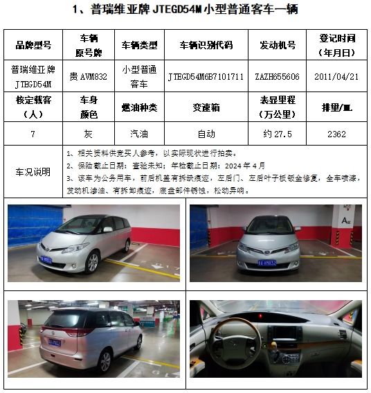 豐田海獅牌及豐田普瑞維亞牌機(jī)動(dòng)車(chē)共計(jì)2輛(整體拍賣(mài))