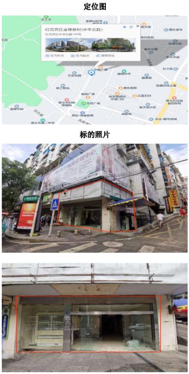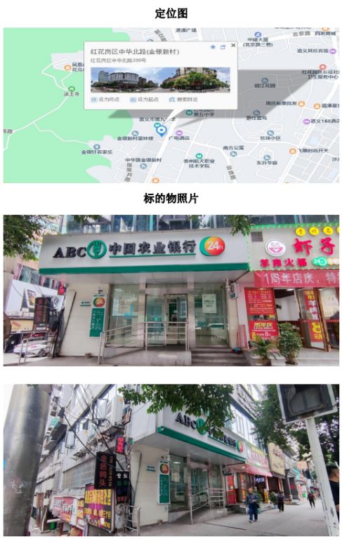 1、該標(biāo)的位于貴州省遵義市紅花崗區(qū)中華南路群力大廈1層,東臨中華南路,其余三面臨其他物業(yè)地塊,周邊商業(yè)氛圍濃重,交通便利,水、電設(shè)施齊全。標(biāo)的按照銀行營業(yè)點(diǎn)進(jìn)行過簡單裝修。