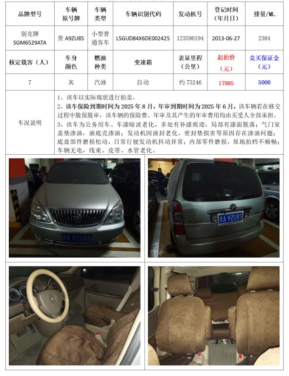 拍品編號5:別克牌SGM6529ATA小型普通客車1輛