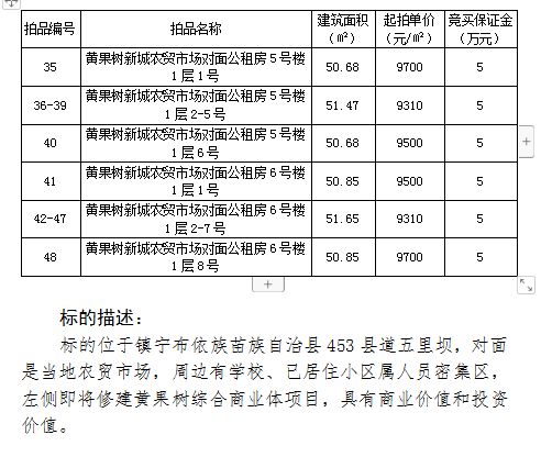 黃果樹旅游區(qū)國有商業(yè)用房拍賣公告